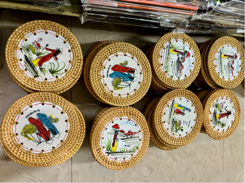 Lót đĩa mây sứ tròn 16 cm - Rattan coaster - Usd 4