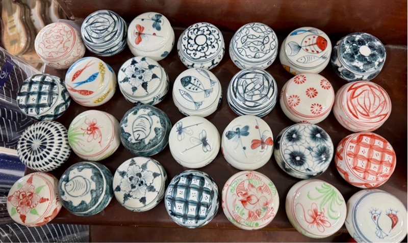 Hộp quít sứ trắng vẽ 9cm - Ceramic box - Usd 3