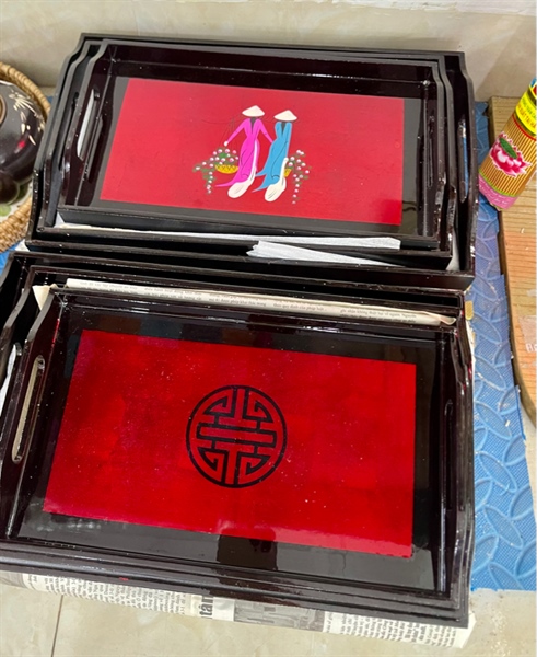 Khay sm vẽ gái thọ chữ nhật vuông to - Lacquer tray - Usd 10