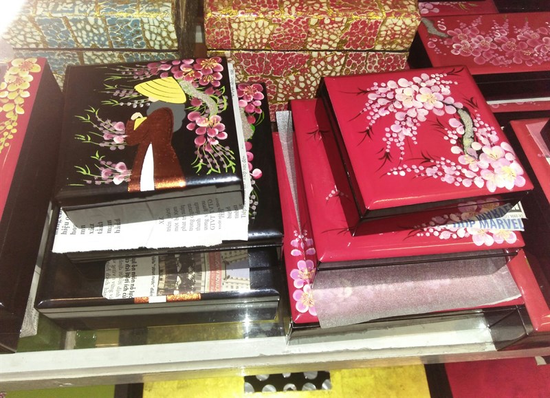 Hộp bộ 2 vuông đào -lacquer box - Usd 13