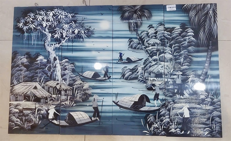 Tranh sm 4 tấm đồng quê 20x50cm-Lacquer painting-Usd 60