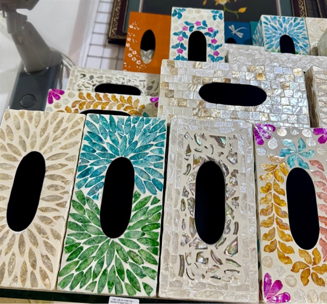 Hộp giấy ăn khảm trai - Mother of pearl tissue box - Usd 11